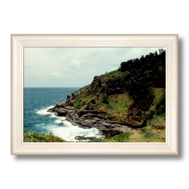 Kauai, the oldest and most northern Hawaiian island, is known as "The Garden Island." Popular for its laid-back atmosphere and rich culture, Kauai features sharp mountain peaks, jagged cliffs, cascading waterfalls, and many more scenic sights. This photo was taken with a Canon T50 in 1990.